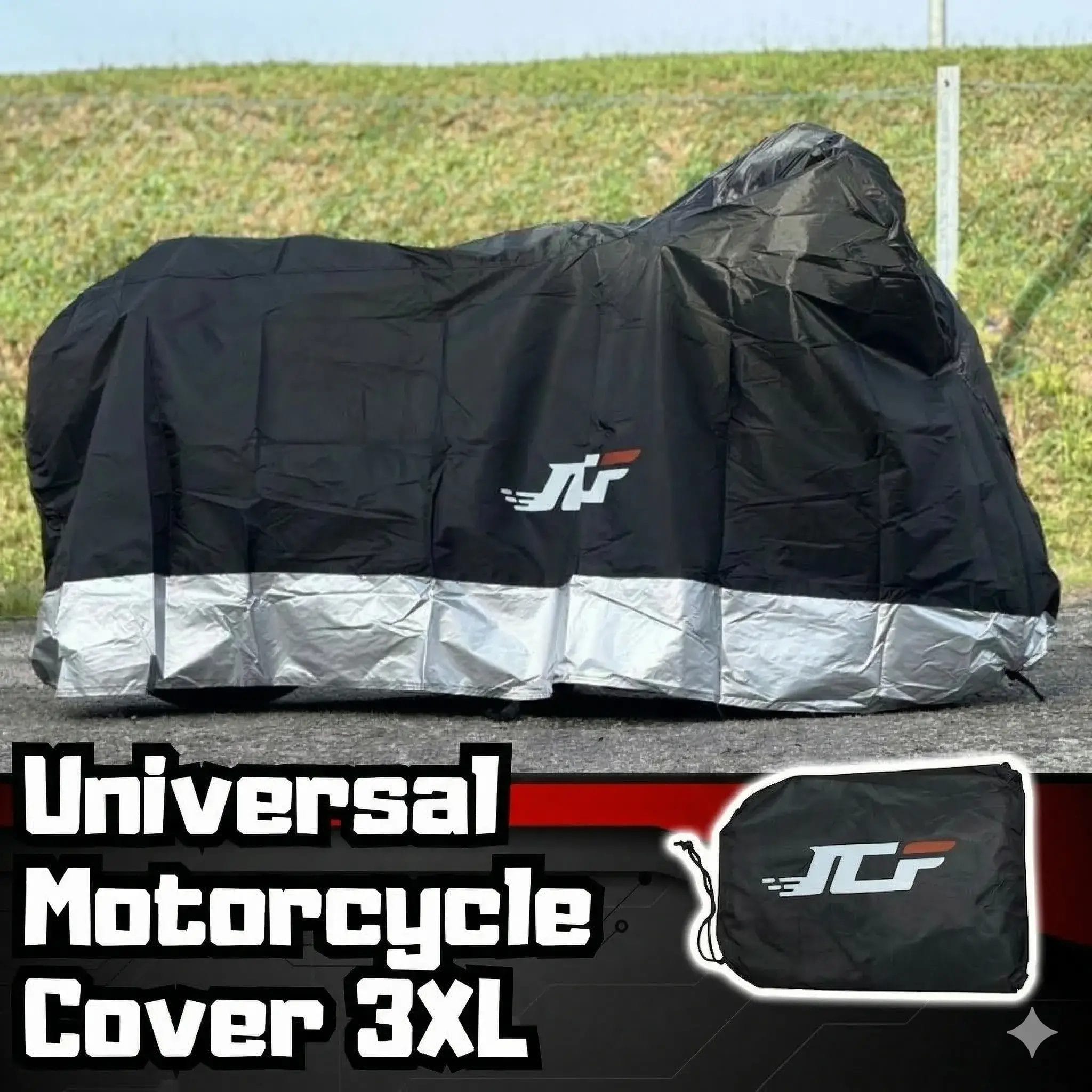 Shield your motorcycle with the Universal 3XL All-Weather Cover. Built from durable, water-resistant fabric with a heat-reflective silver base, it provides maximum protection against UV rays, rain, and dust. Includes a compact carrying pouch for easy storage.
